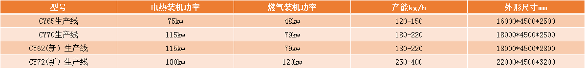 本生產(chǎn)線改變生產(chǎn)工藝流程可以生產(chǎn)夾心米果、米餅、芝麻棒、麥燒、醬油餅等產(chǎn)品。也可用于生產(chǎn)直接膨化型小食品,芝士球、玉米棒、麥香雞塊等產(chǎn)品;本生產(chǎn)烘干機(jī)有電熱型和燃?xì)庑涂晒┻x擇,根據(jù)產(chǎn)能大小合理設(shè)計(jì)烘干機(jī);調(diào)味設(shè)備有單滾筒調(diào)味機(jī),雙滾筒調(diào)味機(jī)、稱重式雙頭八角調(diào)味機(jī)